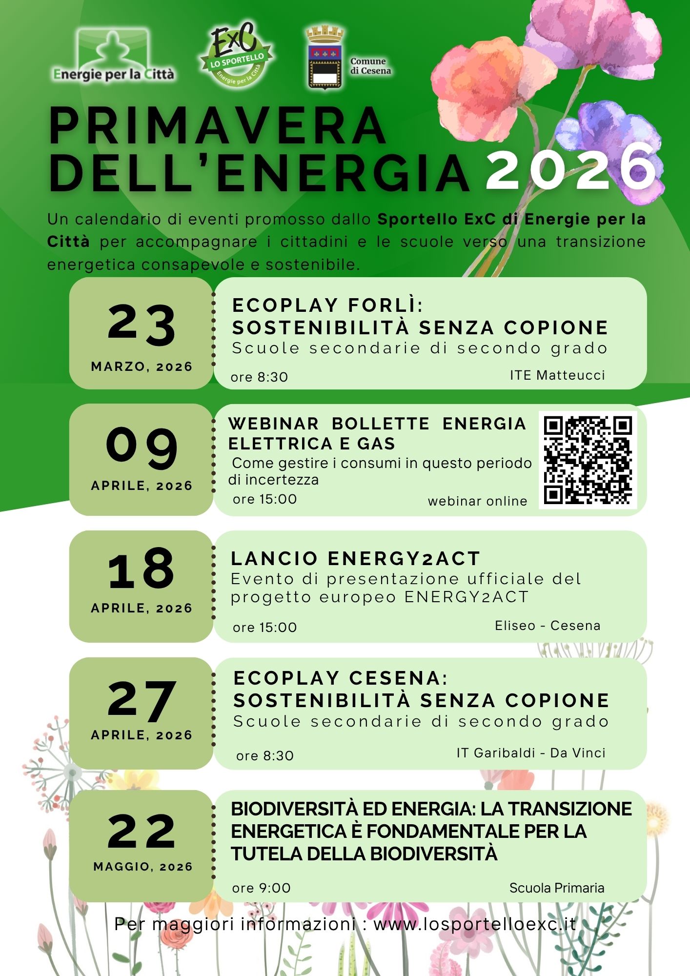 Calendario di eventi promosso dallo Sportello ExC di Energie per la Città per accompagnare cittadini e scuole verso una transizione energetica consapevole e sostenibile.